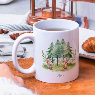 Personalisierbare Tasse für Kinder mit niedlichen Tieren im Wald